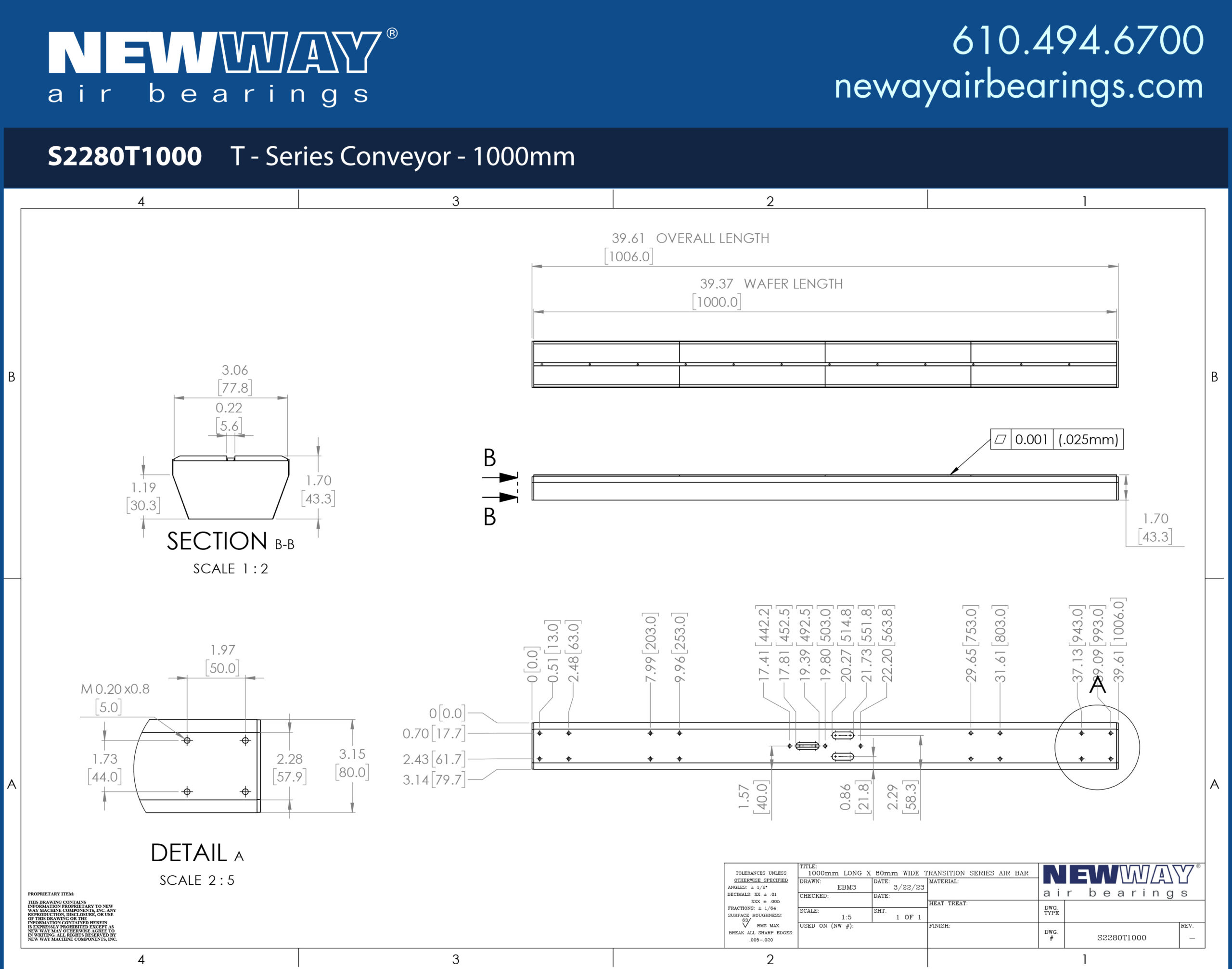 Our specification pages are available in U.S. and metric sizing so there’s no need to convert to your company’s internal standard. Additionally, we offer the engineering drawings for all of our T-Series bearings in both PDF and STEP format, allowing you to easily determine whether our precision-toleranced air bars are the right choice for you!