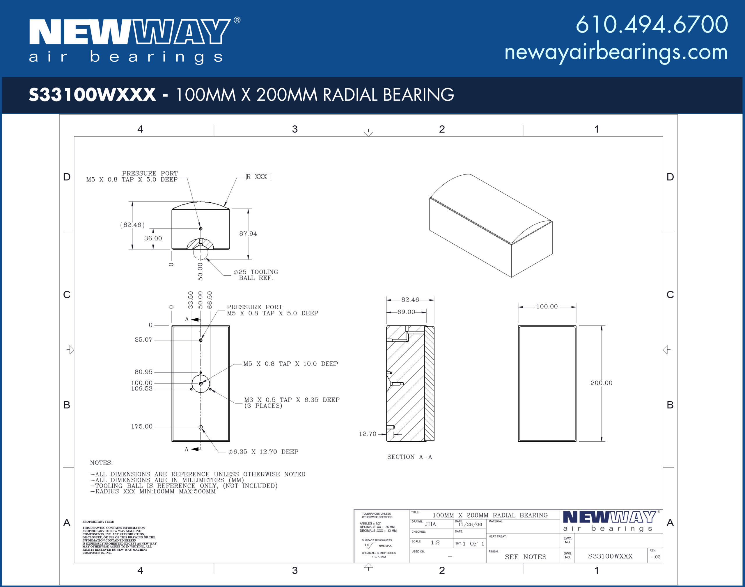 S33100W***S33100W*** – 100mm x 200mm Radial Air Bearings Convex W Profile