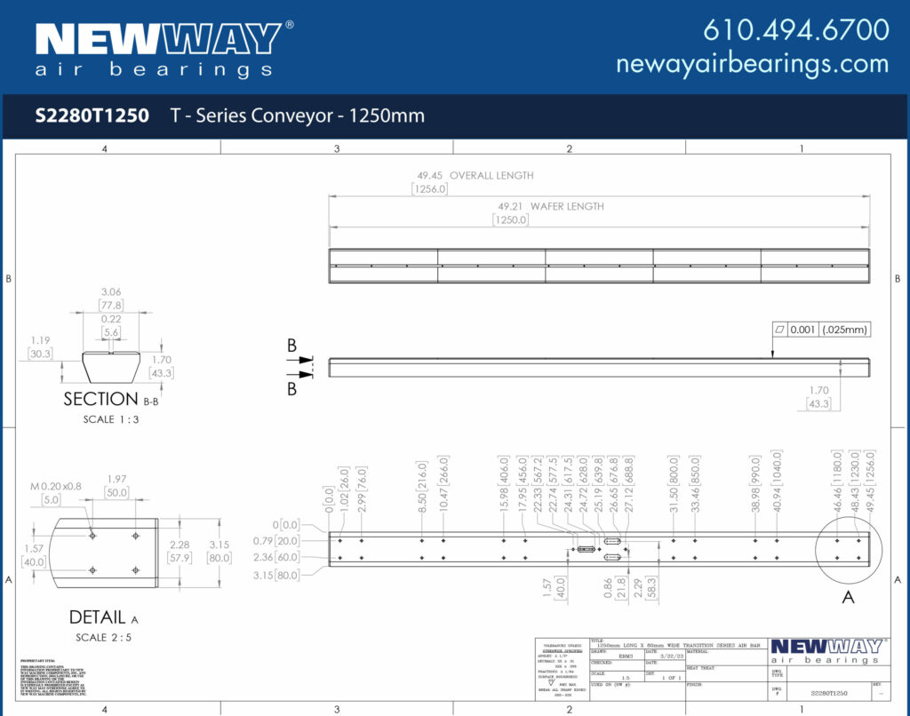 Our specification pages are available in U.S. and metric sizing so there’s no need to convert to your company’s internal standard. Additionally, we offer the engineering drawings for all of our T-Series bearings in both PDF and STEP format, allowing you to easily determine whether our precision-toleranced air bars are the right choice for you!