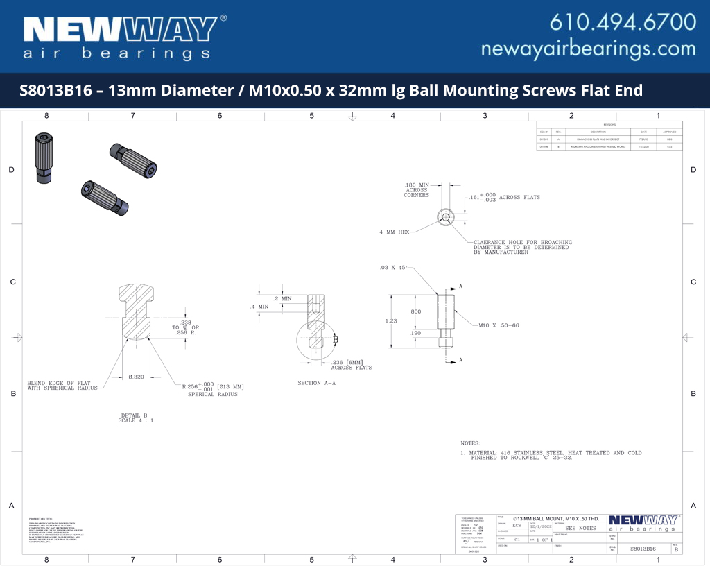 S8013B16S8013B16 – 13mm Diameter / M10x0.50 x 32mm lg Ball Mounting Screws Flat End
