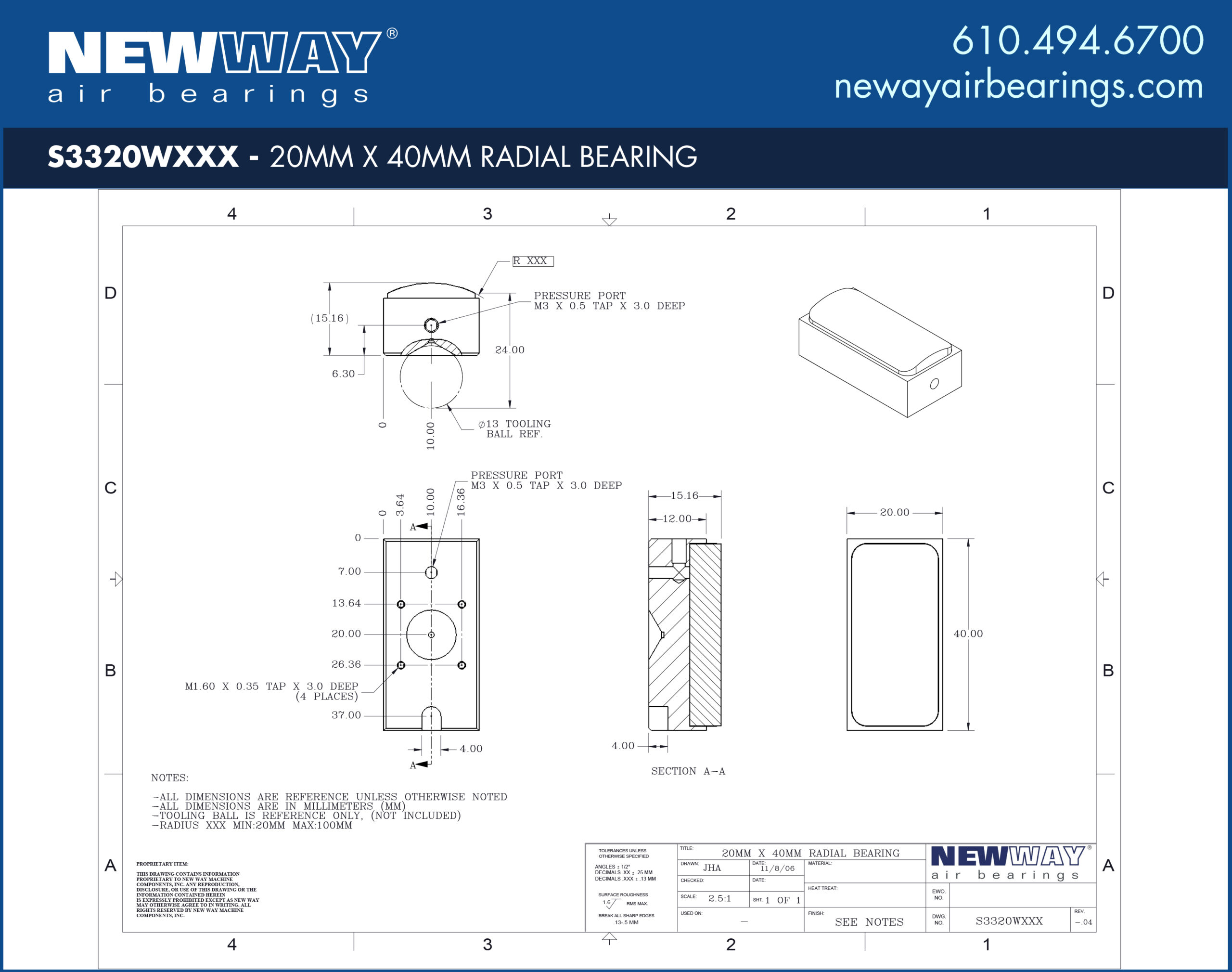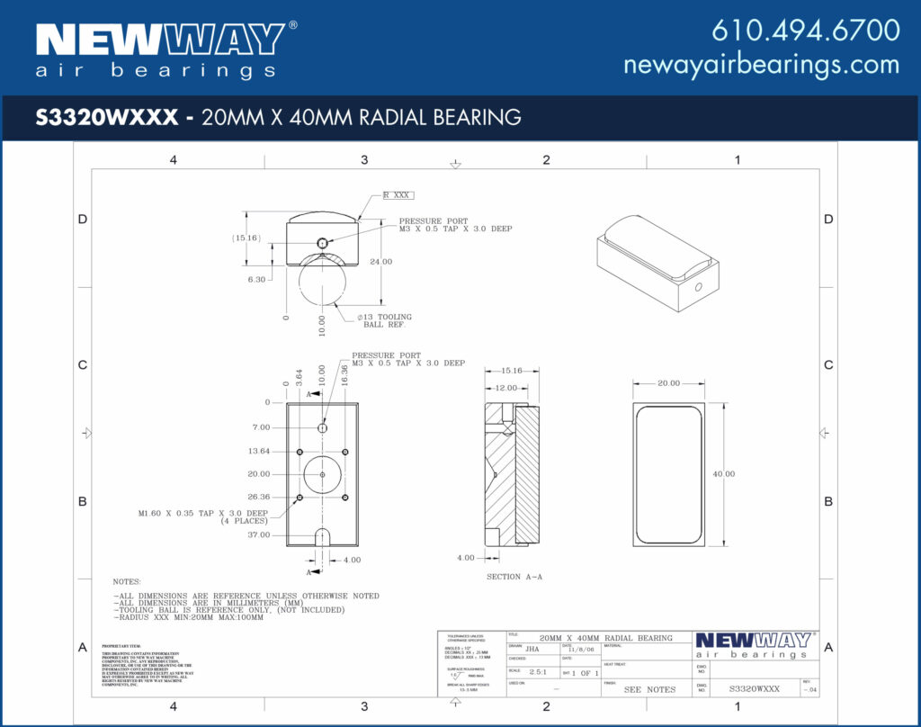 S3320W***S3320W*** – 20mm x 40mm Radial Air Bearings Convex W Profile