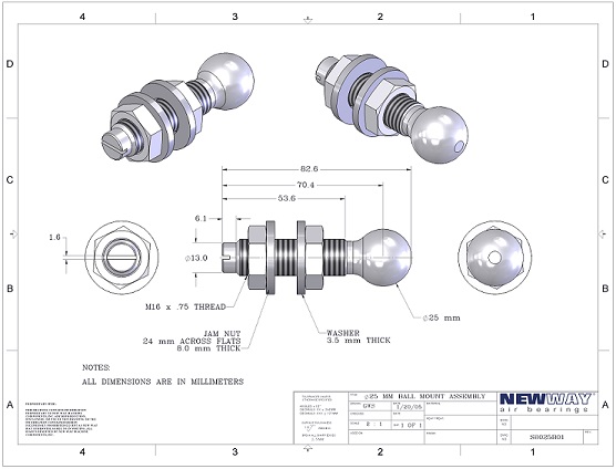 S8025B01S8025B01 – 25mm Diameter / M16 x 0.75 x 83mm lg Ball Mounting Screws Round End