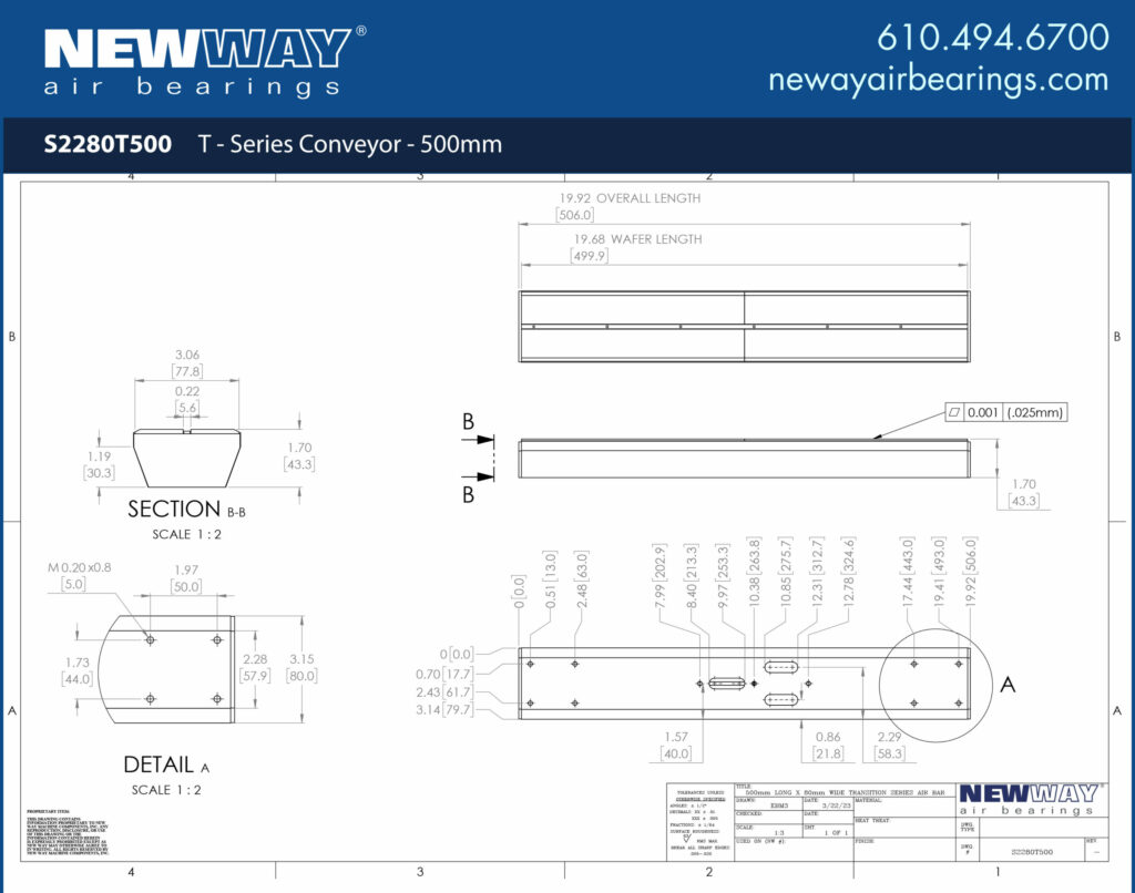 Our specification pages are available in U.S. and metric sizing so there’s no need to convert to your company’s internal standard. Additionally, we offer the engineering drawings for all of our T-Series bearings in both PDF and STEP format, allowing you to easily determine whether our precision-toleranced air bars are the right choice for you!