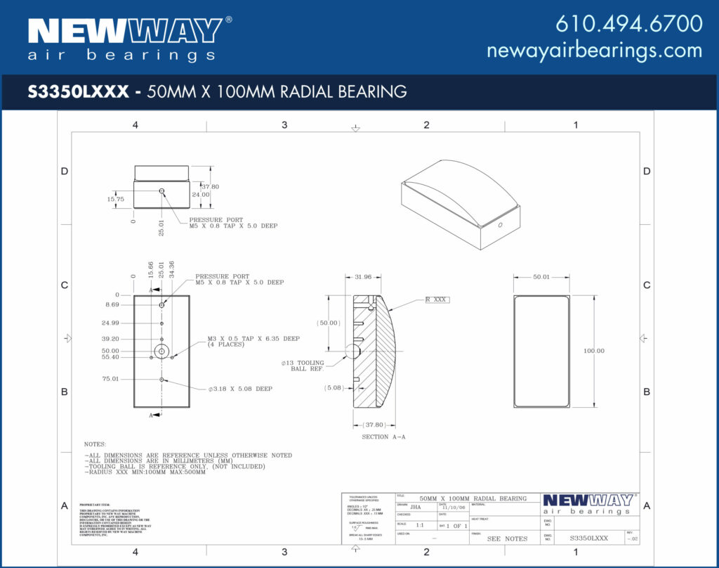 Mounting Details for 50mm x 100mm Radial Air Bearings Convex L Profile with Stainless Steel Ball