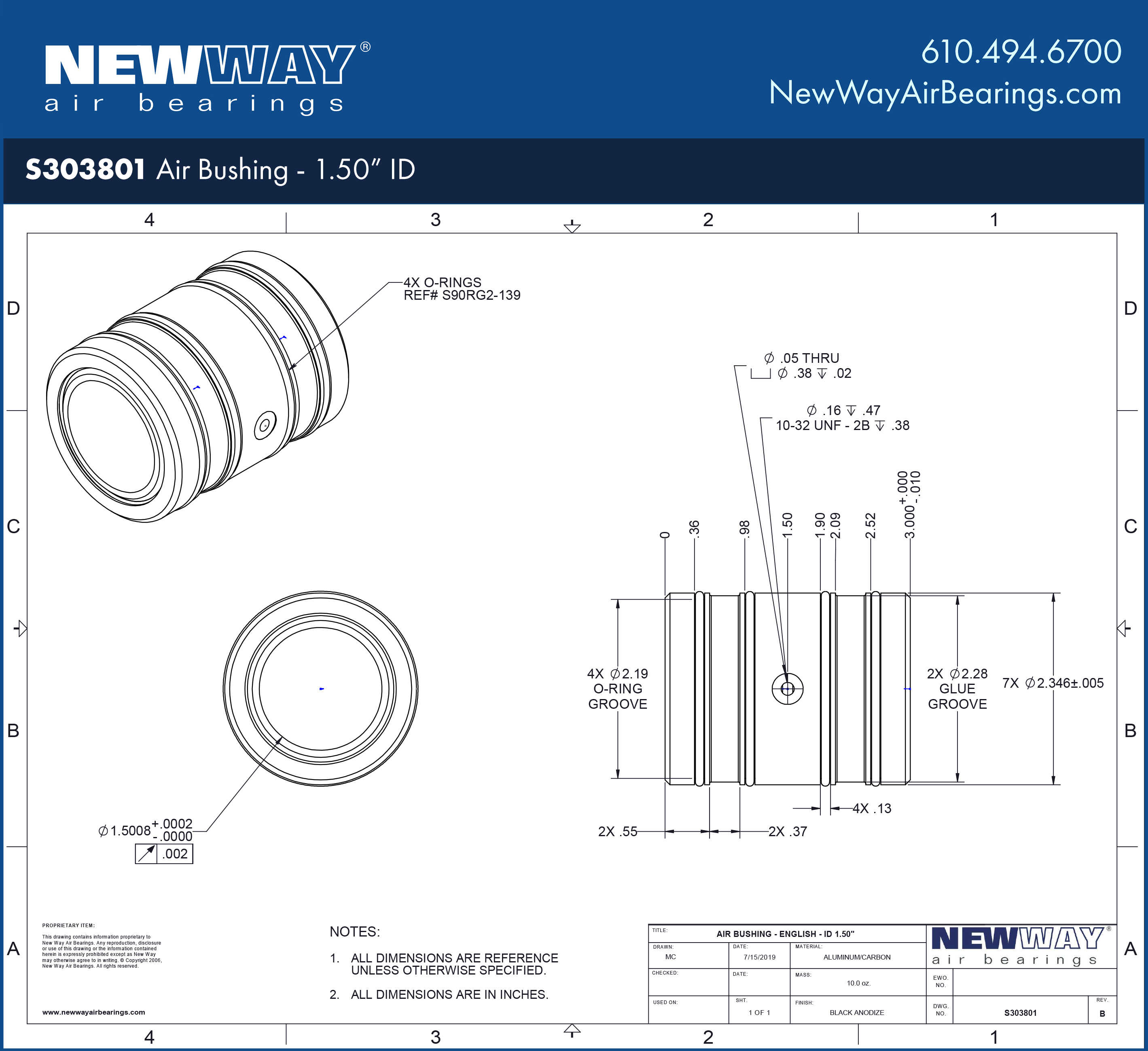 Bushing Inside Diameter (ID) 1.5008 in +.0002/-.000038.120 +0.005/-0.000 mm